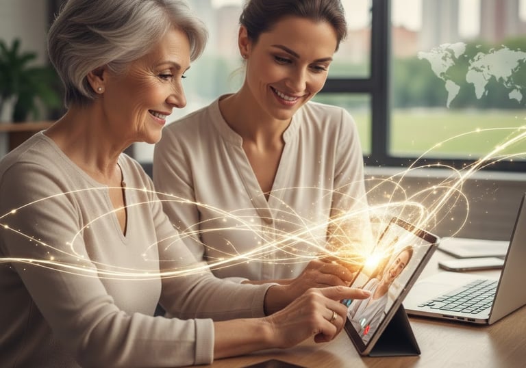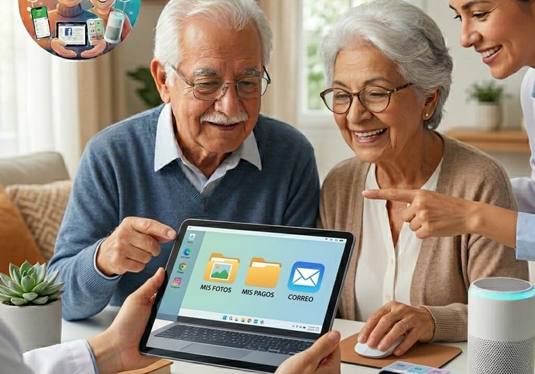 Asistencia tecnológica experta, paciente y enfocada en transformar el dispositivo de un obstáculo a un motor de conexión con la familia y el mundo actual